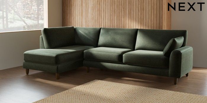 7.2.10 Campbell Large Corner Chaise - Left Hand Luxe Chenille Mid Green High Leg - Mid | Made Click here to use our website with more accessibility support, for example screen readers