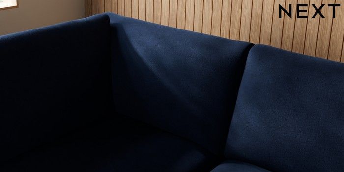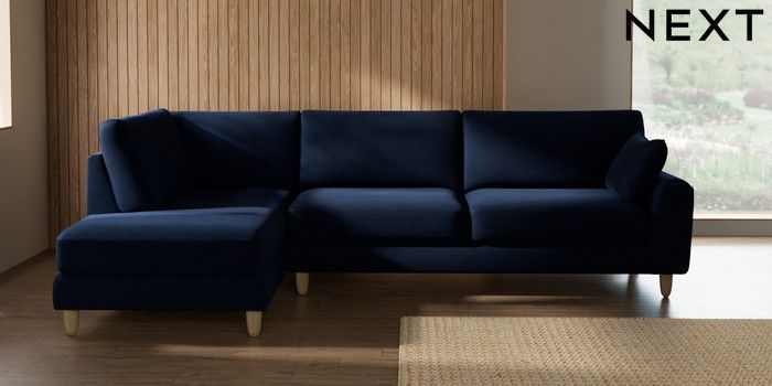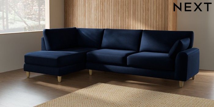 7.2.10 Campbell Large Corner Chaise - Left Hand Luxe Chenille Navy Blue High Leg - Light | Made Click here to use our website with more accessibility support, for example screen readers