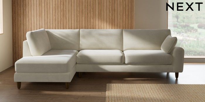 7.2.10 Campbell Large Corner Chaise - Left Hand Luxe Chenille Oyster High Leg - Mid | Made Click here to use our website with more accessibility support, for example screen readers