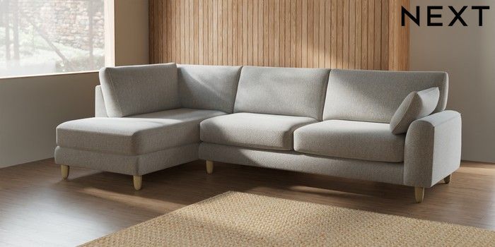 7.2.10 Campbell Large Corner Chaise - Left Hand Multi Weave Light Blue High Leg - Light | Made Click here to use our website with more accessibility support, for example screen readers