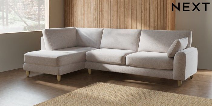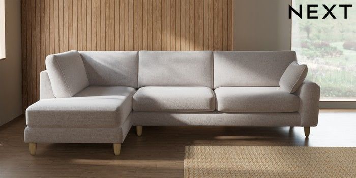 7.2.10 Campbell Large Corner Chaise - Left Hand Multi Weave Oyster High Leg - Light | Made Click here to use our website with more accessibility support, for example screen readers