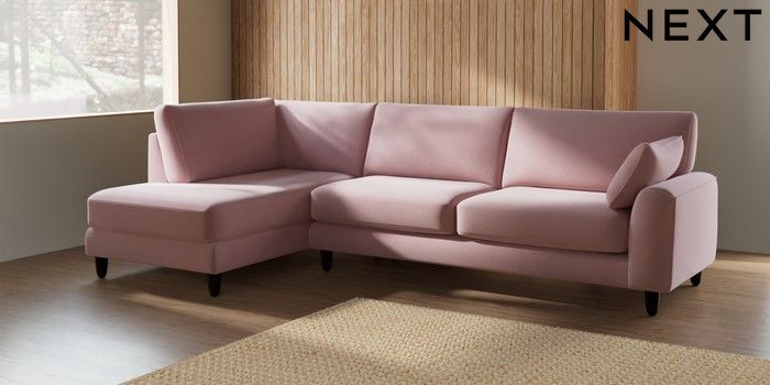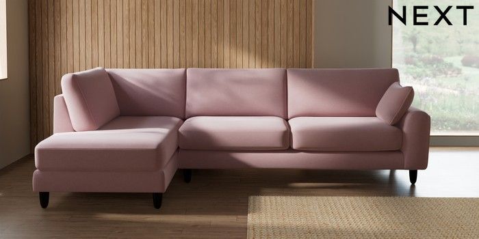 7.2.10 Campbell Large Corner Chaise - Left Hand Natural Mix Light Rose Pink High Leg - Dark | Made Click here to use our website with more accessibility support, for example screen readers