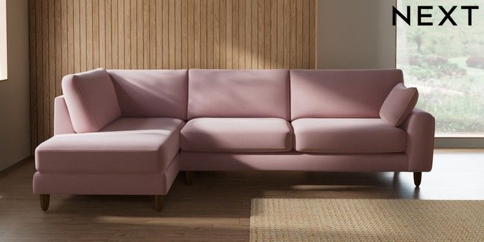 7.2.10 Campbell Large Corner Chaise - Left Hand Natural Mix Light Rose Pink High Leg - Mid | Made Click here to use our website with more accessibility support, for example screen readers