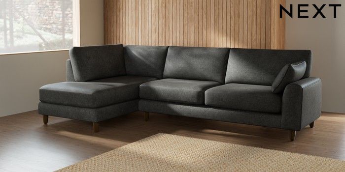 7.2.10 Campbell Large Corner Chaise - Left Hand Plush Chenille Dark Grey High Leg - Mid | Made Click here to use our website with more accessibility support, for example screen readers