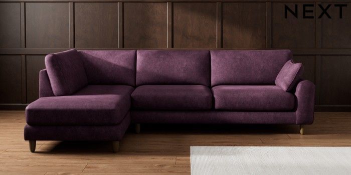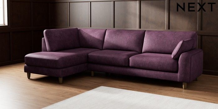 7.2.10 Campbell Large Corner Chaise - Left Hand Plush Chenille Dark Plum Purple High Leg - Mid | Made Click here to use our website with more accessibility support, for example screen readers