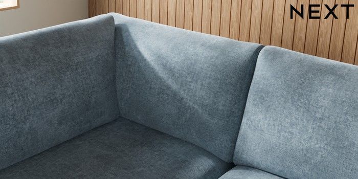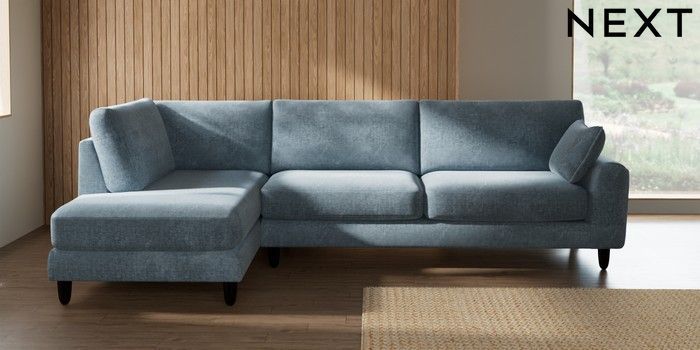7.2.10 Campbell Large Corner Chaise - Left Hand Plush Chenille Light Blue High Leg - Dark | Made Click here to use our website with more accessibility support, for example screen readers