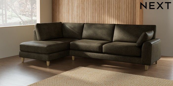 7.2.10 Campbell Large Corner Chaise - Left Hand Plush Chenille Moss Green High Leg - Light | Made Click here to use our website with more accessibility support, for example screen readers