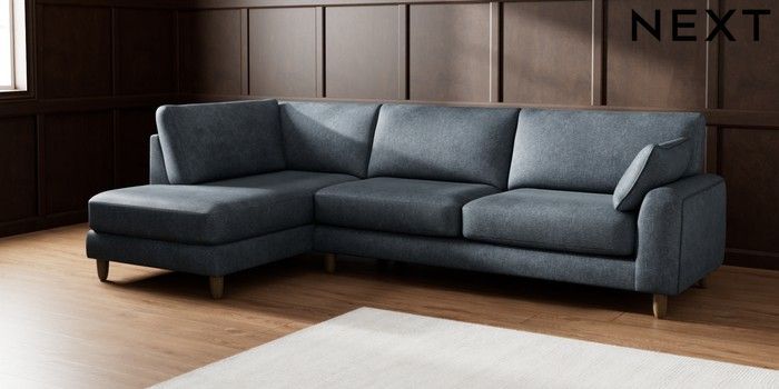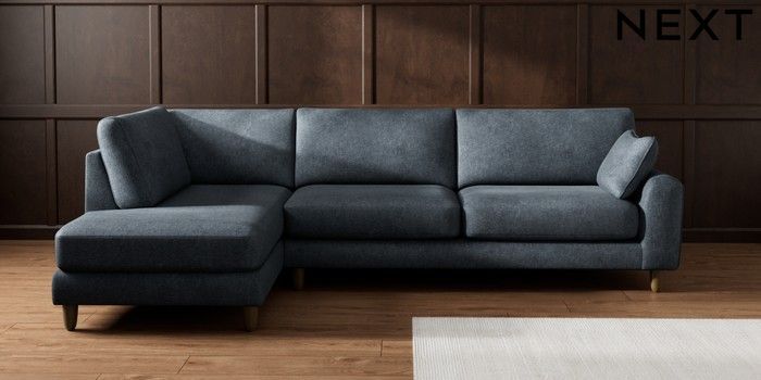 7.2.10 Campbell Large Corner Chaise - Left Hand Plush Chenille Slate Blue High Leg - Mid | Made Click here to use our website with more accessibility support, for example screen readers
