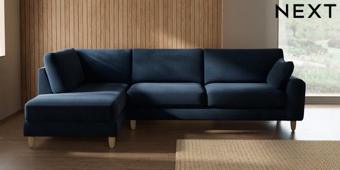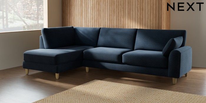 7.2.10 Campbell Large Corner Chaise - Left Hand Ripple Chenille Dark Blue High Leg - Light | Made Click here to use our website with more accessibility support, for example screen readers
