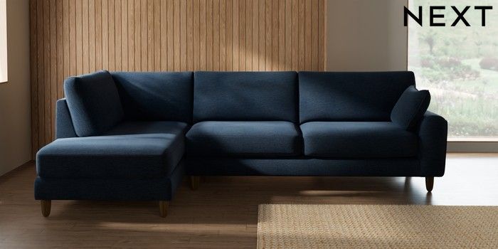 7.2.10 Campbell Large Corner Chaise - Left Hand Ripple Chenille Dark Blue High Leg - Mid | Made Click here to use our website with more accessibility support, for example screen readers