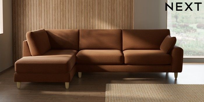 7.2.10 Campbell Large Corner Chaise - Left Hand Ripple Chenille Mid Rust Brown High Leg - Light | Made Click here to use our website with more accessibility support, for example screen readers
