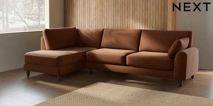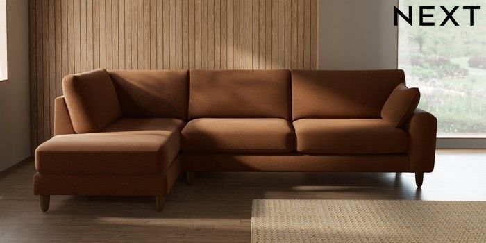 7.2.10 Campbell Large Corner Chaise - Left Hand Ripple Chenille Mid Rust Brown High Leg - Mid | Made Click here to use our website with more accessibility support, for example screen readers