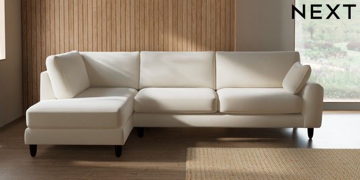 7.2.10 Campbell Large Corner Chaise - Left Hand Ripple Chenille Oyster High Leg - Dark | Made Click here to use our website with more accessibility support, for example screen readers