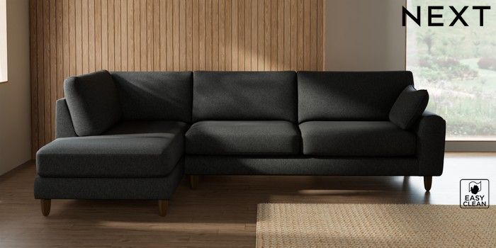 7.2.10 Campbell Large Corner Chaise - Left Hand Tweedy Blend Easy Clean Charcoal Grey High Leg - Mid | Made Click here to use our website with more accessibility support, for example screen readers
