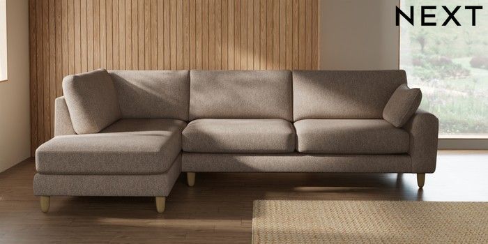 7.2.10 Campbell Large Corner Chaise - Left Hand Tweedy Chenille Mid Natural High Leg - Light | Made Click here to use our website with more accessibility support, for example screen readers