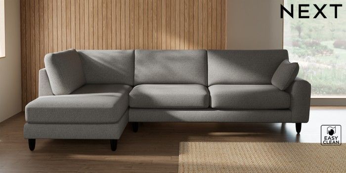 7.2.10 Campbell Large Corner Chaise - Left Hand Woven Chenille Easy Clean Light Grey High Leg - Dark | Made Click here to use our website with more accessibility support, for example screen readers