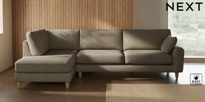 7.2.10 Campbell Large Corner Chaise - Left Hand Woven Chenille Easy Clean Mid Natural High Leg - Light | Made Click here to use our website with more accessibility support, for example screen readers
