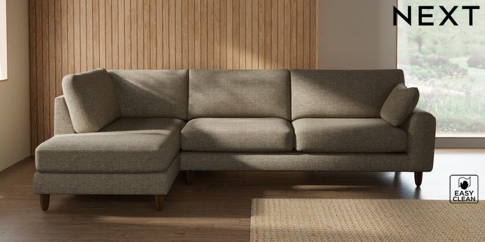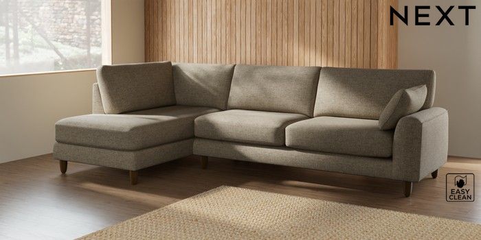 7.2.10 Campbell Large Corner Chaise - Left Hand Woven Chenille Easy Clean Mid Natural High Leg - Mid | Made Click here to use our website with more accessibility support, for example screen readers