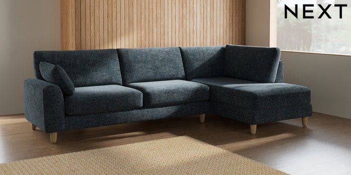 7.2.10 Campbell Large Corner Chaise - Right Hand Chunky Chenille Dark Navy Blue High Leg - Light | Made Click here to use our website with more accessibility support, for example screen readers