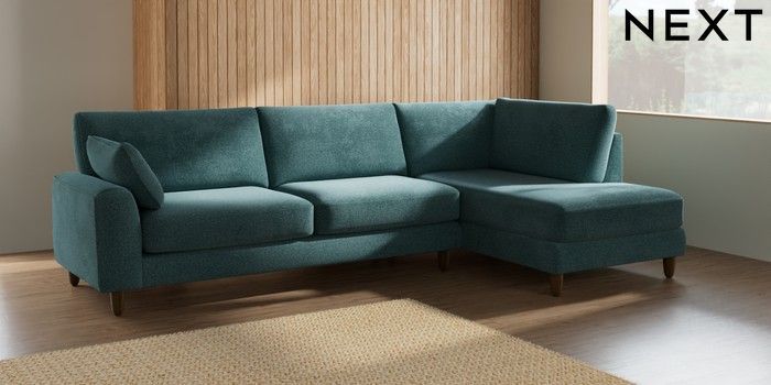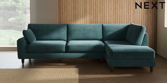 7.2.10 Campbell Large Corner Chaise - Right Hand Chunky Chenille Mid Teal Green High Leg - Mid | Made Click here to use our website with more accessibility support, for example screen readers