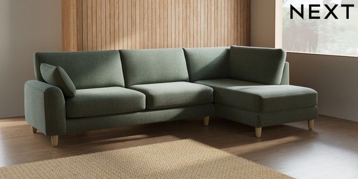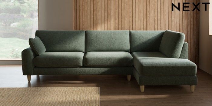 7.2.10 Campbell Large Corner Chaise - Right Hand Chunky Texture Mid Forest Green High Leg - Light | Made Click here to use our website with more accessibility support, for example screen readers