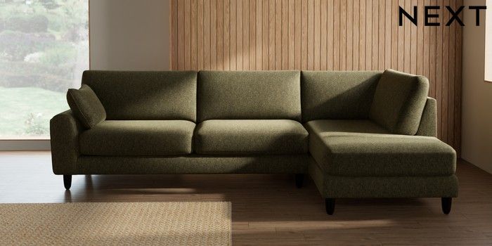7.2.10 Campbell Large Corner Chaise - Right Hand Cotswold Chenille Dark Green High Leg - Dark | Made Click here to use our website with more accessibility support, for example screen readers