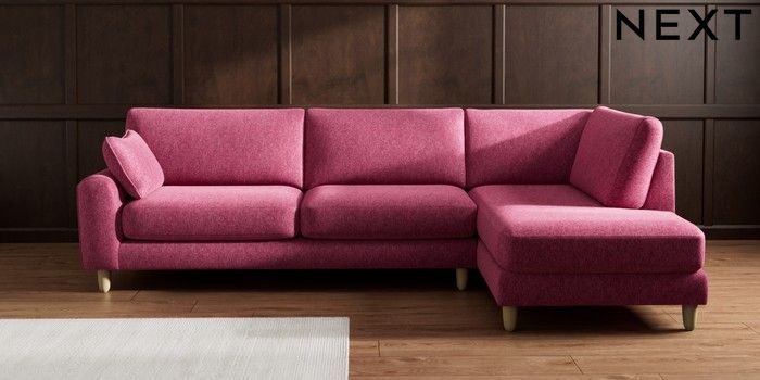 7.2.10 Campbell Large Corner Chaise - Right Hand Cotswold Chenille Dark Raspberry Pink High Leg - Light | Made Click here to use our website with more accessibility support, for example screen readers