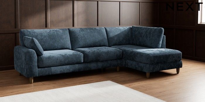 7.2.10 Campbell Large Corner Chaise - Right Hand Distressed Velour Midnight Blue High Leg - Mid | Made Click here to use our website with more accessibility support, for example screen readers