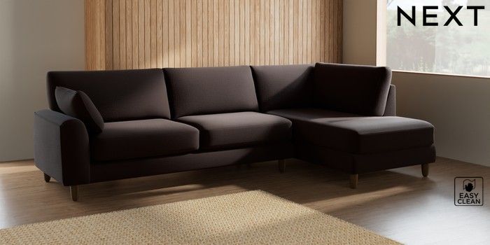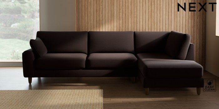 7.2.10 Campbell Large Corner Chaise - Right Hand Fine Chenille Easy Clean Chocolate Brown High Leg - Mid | Made Click here to use our website with more accessibility support, for example screen readers