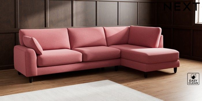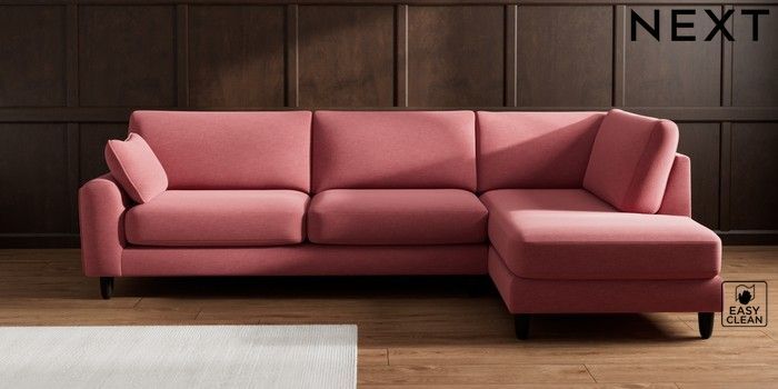 7.2.10 Campbell Large Corner Chaise - Right Hand Fine Chenille Easy Clean Mid Pink High Leg - Dark | Made Click here to use our website with more accessibility support, for example screen readers