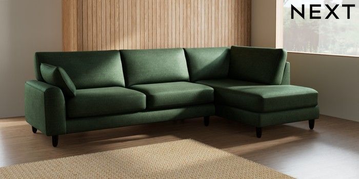 7.2.10 Campbell Large Corner Chaise - Right Hand Luxe Chenille Dark Green High Leg - Dark | Made Click here to use our website with more accessibility support, for example screen readers