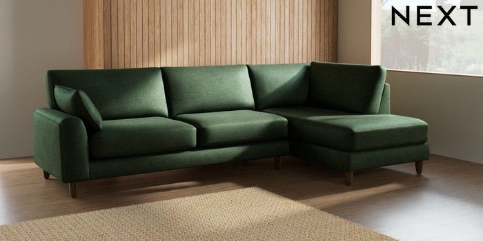 7.2.10 Campbell Large Corner Chaise - Right Hand Luxe Chenille Dark Green High Leg - Mid | Made Click here to use our website with more accessibility support, for example screen readers