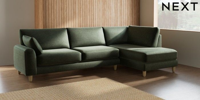 7.2.10 Campbell Large Corner Chaise - Right Hand Luxe Chenille Mid Green High Leg - Light | Made Click here to use our website with more accessibility support, for example screen readers