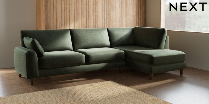 7.2.10 Campbell Large Corner Chaise - Right Hand Luxe Chenille Mid Green High Leg - Mid | Made Click here to use our website with more accessibility support, for example screen readers