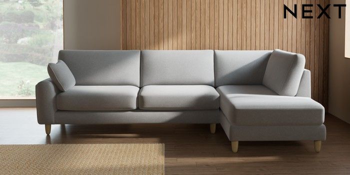 7.2.10 Campbell Large Corner Chaise - Right Hand Natural Mix Light Grey High Leg - Light | Made Click here to use our website with more accessibility support, for example screen readers