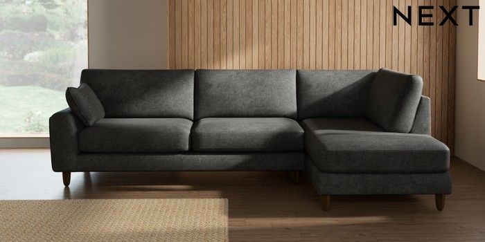 7.2.10 Campbell Large Corner Chaise - Right Hand Plush Chenille Dark Grey High Leg - Mid | Made Click here to use our website with more accessibility support, for example screen readers