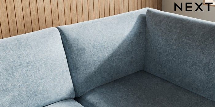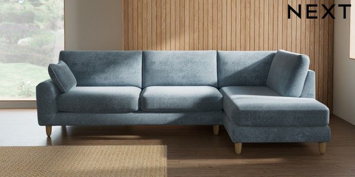 7.2.10 Campbell Large Corner Chaise - Right Hand Plush Chenille Light Blue High Leg - Light | Made Click here to use our website with more accessibility support, for example screen readers