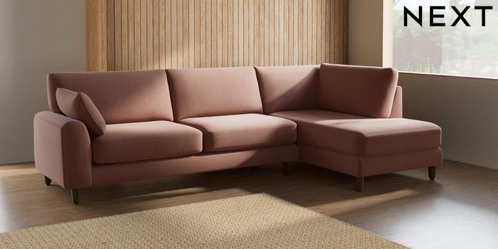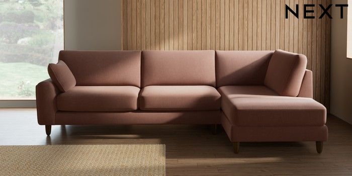 7.2.10 Campbell Large Corner Chaise - Right Hand Relaxed Linen Look Light Rust Brown High Leg - Mid | Made Click here to use our website with more accessibility support, for example screen readers