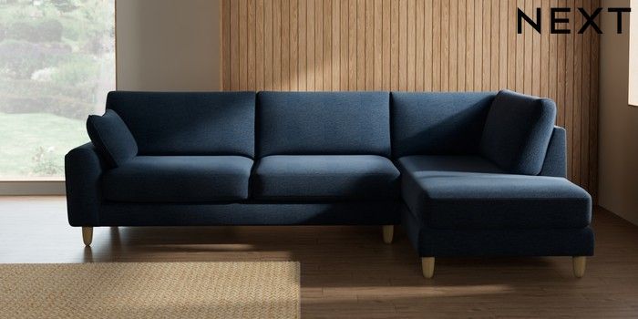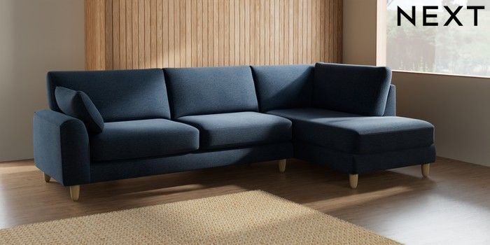 7.2.10 Campbell Large Corner Chaise - Right Hand Ripple Chenille Dark Blue High Leg - Light | Made Click here to use our website with more accessibility support, for example screen readers