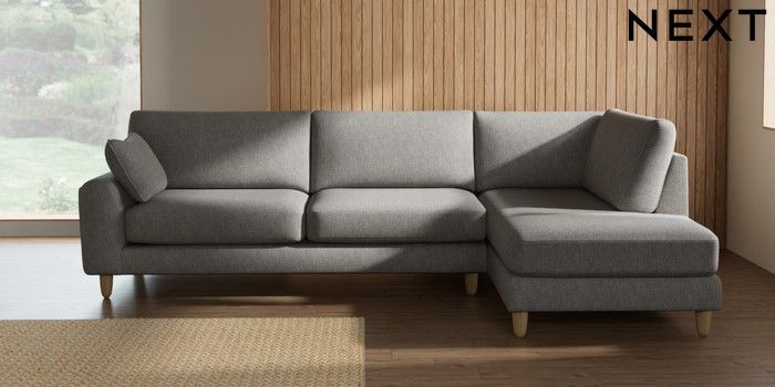 7.2.10 Campbell Large Corner Chaise - Right Hand Tweedy Chenille Mid Grey High Leg - Light | Made Click here to use our website with more accessibility support, for example screen readers
