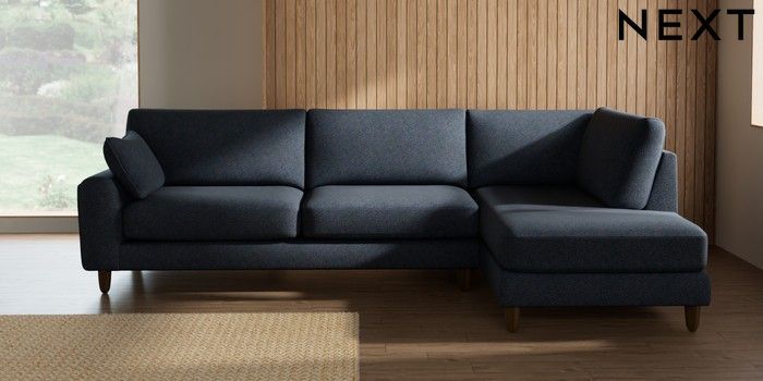 7.2.10 Campbell Large Corner Chaise - Right Hand Tweedy Chenille Navy Blue High Leg - Mid | Made Click here to use our website with more accessibility support, for example screen readers