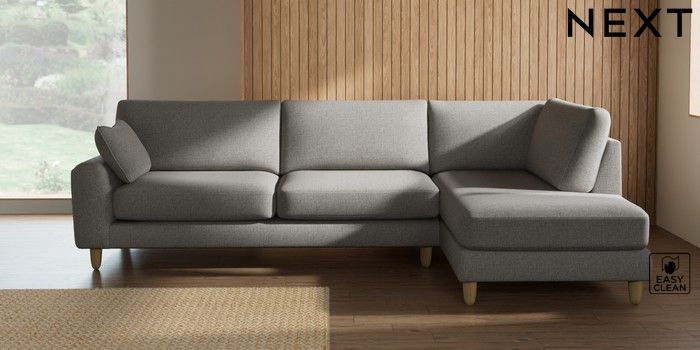 7.2.10 Campbell Large Corner Chaise - Right Hand Woven Chenille Easy Clean Light Grey High Leg - Light | Made Click here to use our website with more accessibility support, for example screen readers