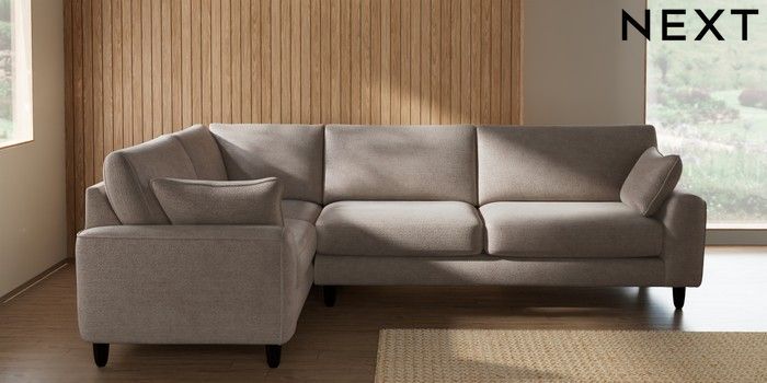 7.2.10 Campbell Large Corner Sofa - Left Hand Boucle Chenille Light Natural High Leg - Dark | Made Click here to use our website with more accessibility support, for example screen readers