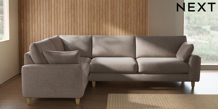 7.2.10 Campbell Large Corner Sofa - Left Hand Boucle Chenille Light Natural High Leg - Light | Made Click here to use our website with more accessibility support, for example screen readers