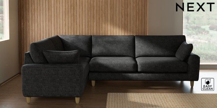 7.2.10 Campbell Large Corner Sofa - Left Hand Boucle Weave Easy Clean Charcoal Grey High Leg - Light | Made Click here to use our website with more accessibility support, for example screen readers