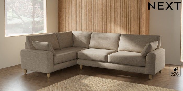 7.2.10 Campbell Large Corner Sofa - Left Hand Boucle Weave Easy Clean Dark Natural High Leg - Light | Made Click here to use our website with more accessibility support, for example screen readers