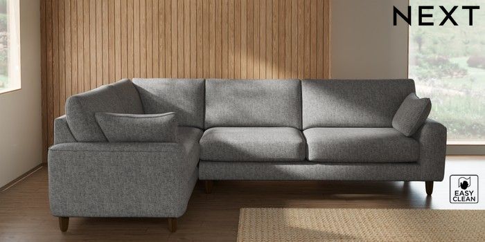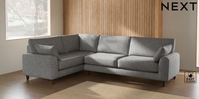 7.2.10 Campbell Large Corner Sofa - Left Hand Chunky Boucle Easy Clean Light Grey High Leg - Mid | Made Click here to use our website with more accessibility support, for example screen readers