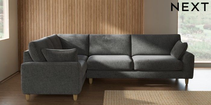 7.2.10 Campbell Large Corner Sofa - Left Hand Chunky Chenille Dark Grey High Leg - Light | Made Click here to use our website with more accessibility support, for example screen readers