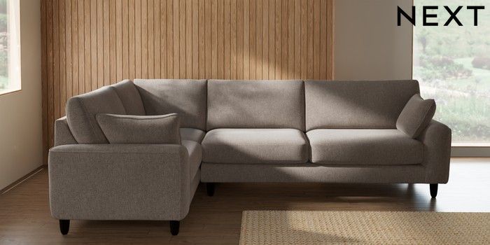 7.2.10 Campbell Large Corner Sofa - Left Hand Chunky Chenille Light Dove High Leg - Dark | Made Click here to use our website with more accessibility support, for example screen readers