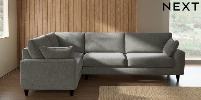 7.2.10 Campbell Large Corner Sofa - Left Hand Chunky Chenille Light Grey High Leg - Dark | Made Click here to use our website with more accessibility support, for example screen readers